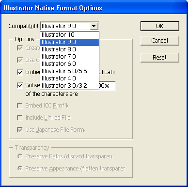 Рис. 13.11 . Диалоговое окно Illustrator Native Format Options