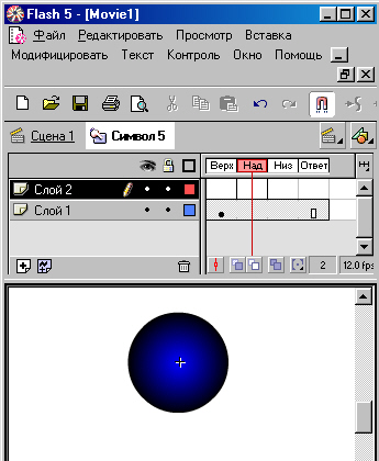 кнопка становится при этом независимой анимацией (символом Movil Clip (Фрагмент фильма)), которую можно повторно использовать в фильме