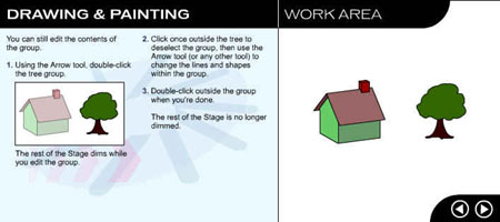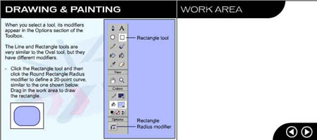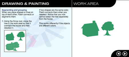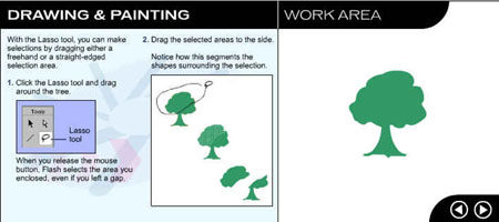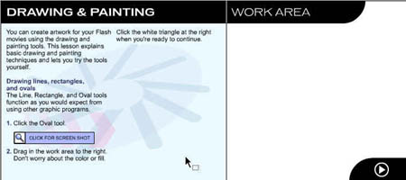 Первый урок посвящен рисованию и закрашиванию. Выберите команду Help (Справка) Þ Lessons (Уроки) Þ 2 Drawing (Рисование). Вы увидите окно программы Flash, показанное на рис. 1.3.