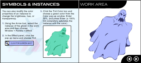 Трансформы созданного символа можно использовать в любой части фильма.1. Перетащите изображение привидения из окна библиотеки в рабочую область. При каждом перетаскивании создается новая трансформа символа.