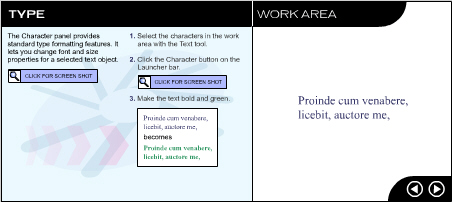 Панель Character (Символ) предлагает обычный набор возможностей для форматирования, позволяя изменять шрифт и размер текстового объекта.