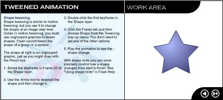 Кадрирование изменения формы аналогично кадрированию движения, только имитирует изменение во времени формы объекта. В отличие от кадрирования движения, для кадрирования изменения формы группировка изображения не требуется, более того, Flash не выполняет кадрирование изменения формы символа или группы.